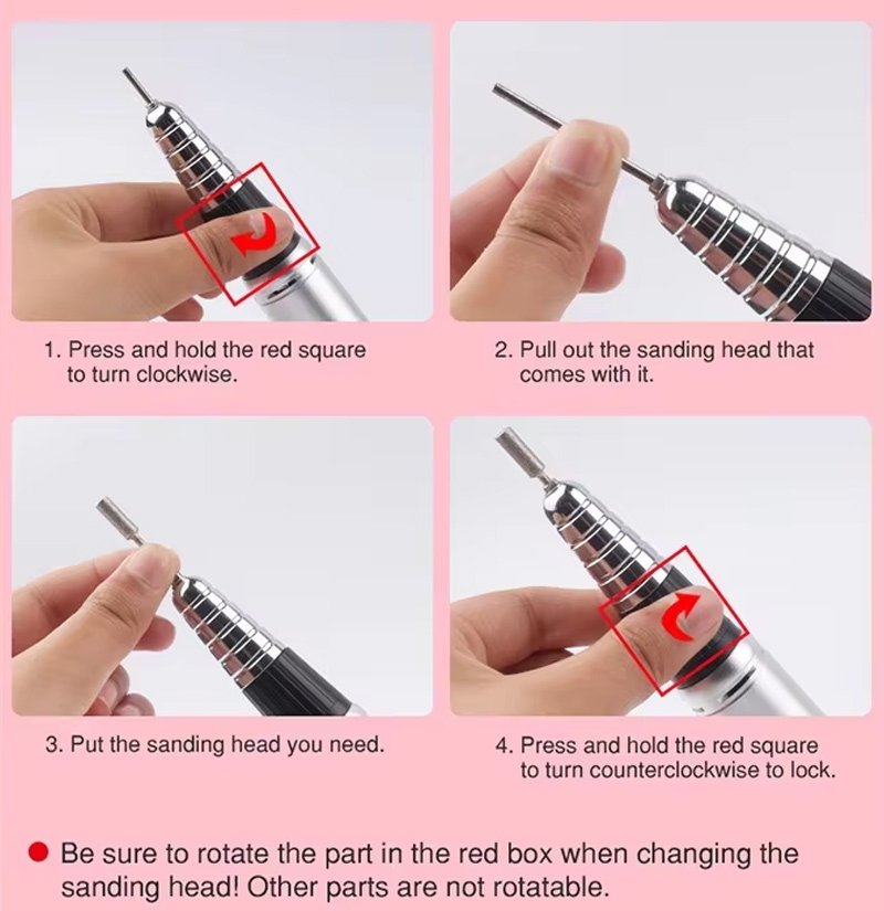 35,000 rpm ელექტრო პორტატული გელის ფრჩხილის საბურღი ჩანაცვლების საბურღი მუშაობის მეთოდი, ანუ ჩასმა და ამოღება, მარტივი და მოსახერხებელი, ჩანაცვლება შეიძლება გამოყენებულ იქნას დასრულების შემდეგ.