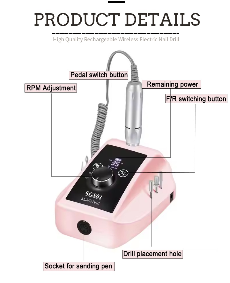 | 35,000 RPM ელექტრო პორტატული გელის ფრჩხილის საბურღი დეტალები |
