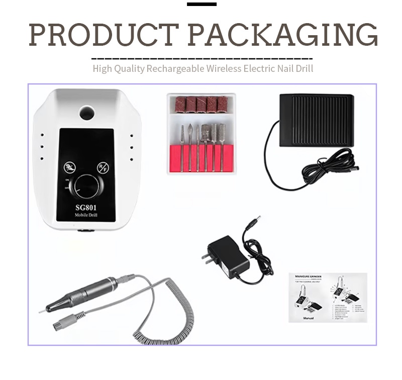 ამ 35,000 ბრ/წთ ელექტრო პორტატული გელის ფრჩხილის საბურღი პაკეტის შიგთავსს აქვს მოსახვეწი კალმის პროდუქტი, USB დამტენი კაბელი, პროდუქტის ინსტრუქციის სახელმძღვანელო და მსუბუქი და პორტატული ყუთი.