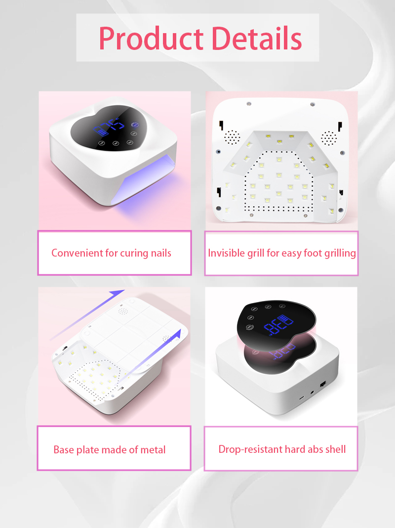 პროდუქტი უზრუნველყოფს წებოს თანაბარ გაშრობას შეკუმშვის გარეშე. მისი ორმაგი სინათლის წყაროები უზრუნველყოფს რბილ გათბობას ხელის გაუფერულებისა და თვალის დაძაბვის თავიდან ასაცილებლად, შესაფერისია როგორც ხელებისთვის, ასევე ფეხებისთვის, რაც იძლევა საოცრად სწრაფად გაშრობის შედეგებს.