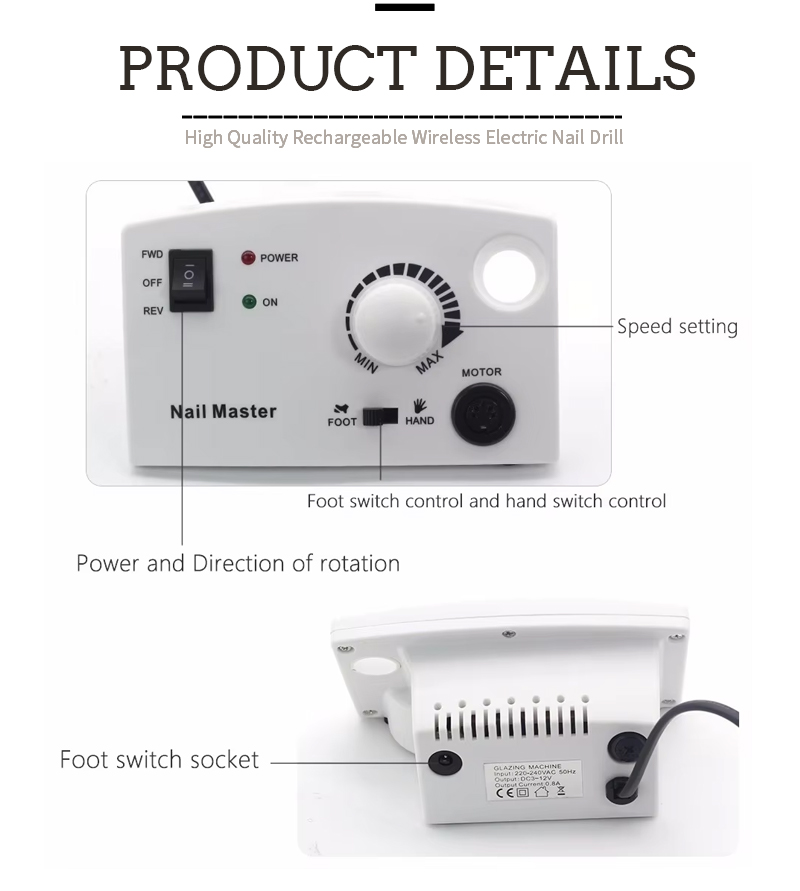 პროდუქტის მახასიათებლები და პროგრამები 602 მაღალსიჩქარიანი 30,000 rpm ელექტრო ფრჩხილის ფაილის ფრჩხილის პოლონური მოსაშორებლად