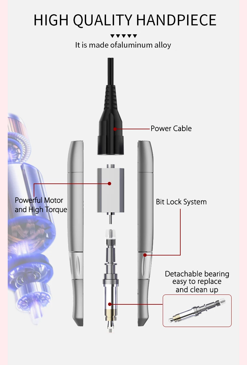 პორტატული ფრჩხილის საბურღი კომპლექტი ელექტრო ძლიერი ძრავით 65w 35000 rpm