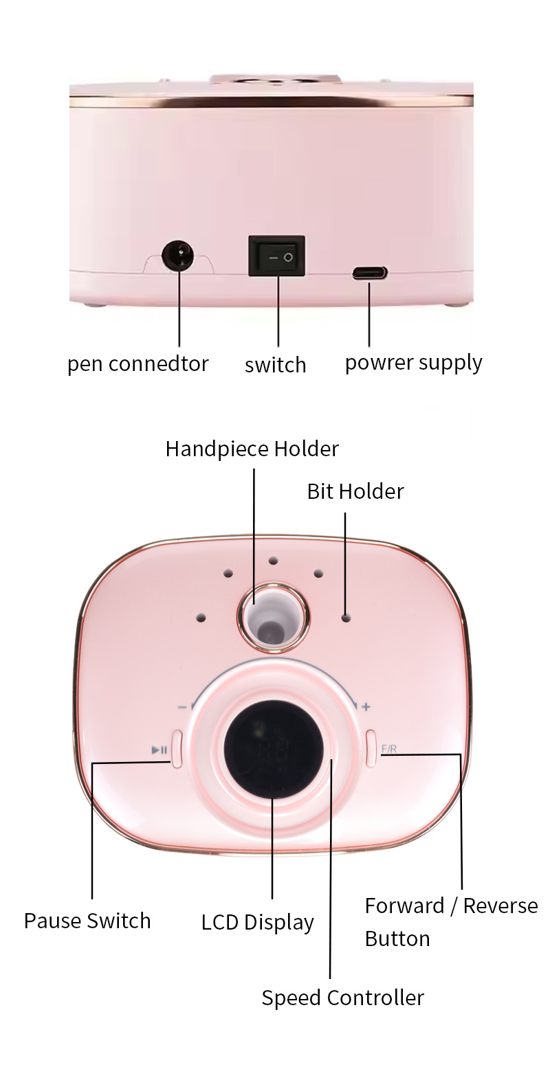 ფრჩხილის საბურღი ნაკრები Electric File Professional 65w 35000rpm