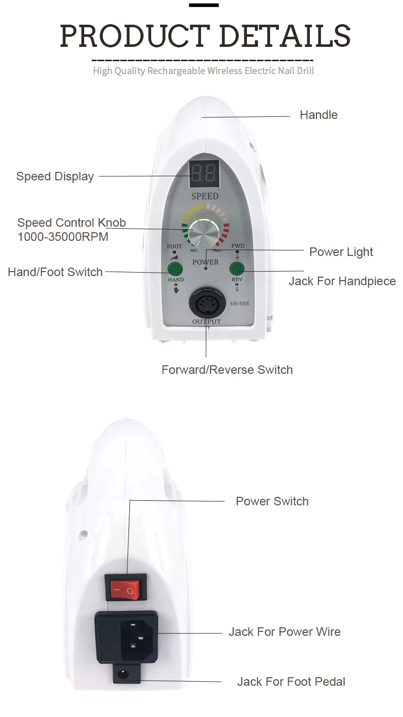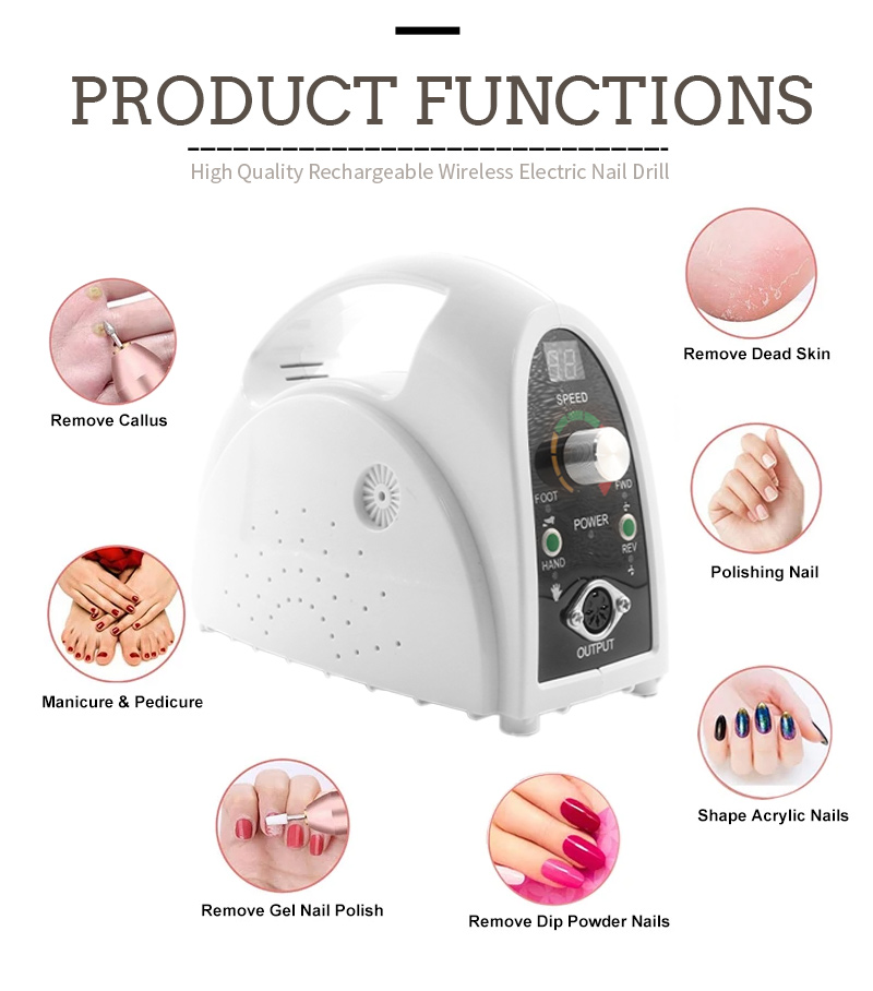 პროდუქტის ფუნქცია და 702 მაღალი სიჩქარის 35000 rpm ფრჩხილის პოლონური მოსაშორებელი ელექტრო ფრჩხილის ფაილის გამოყენება
