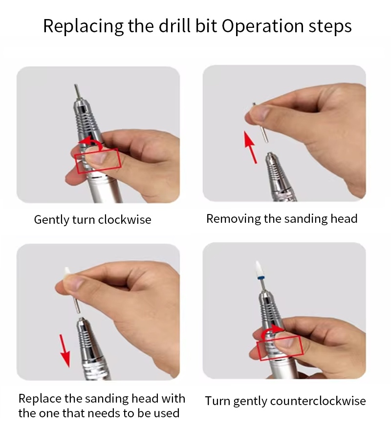 ეს ხელის ფრჩხილის საბურღი და გასაპრიალებელი ჩანაცვლების საბურღი მუშაობის მეთოდი, ანუ ჩასმა და ამოღება, მარტივი და მოსახერხებელი, ჩანაცვლება შეიძლება გამოყენებულ იქნას დასრულების შემდეგ.