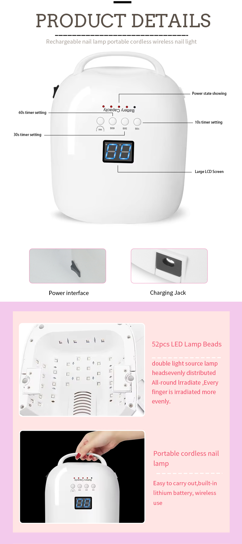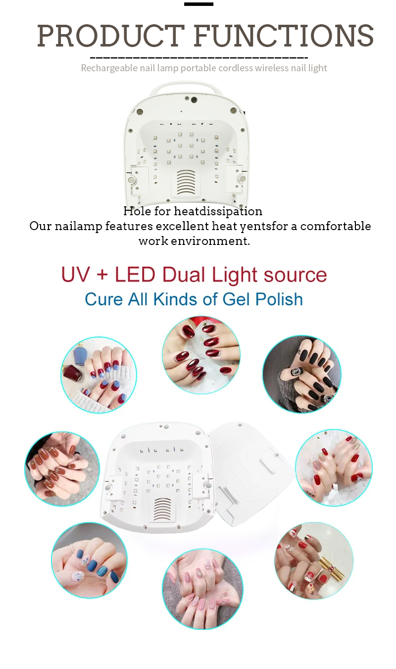 პროდუქტი უზრუნველყოფს წებოს გაშრობასაც კი, შემცირების გარეშე. მისი ორმაგი სინათლის წყაროები უზრუნველყოფენ ნაზი გათბობას, რათა თავიდან აიცილონ ხელის გაუფერულება და თვალის დაძაბვა, შესაფერისი როგორც ხელისა და ფეხებისთვის, რაც საოცრად სწრაფად გაშრობის შედეგებს იძლევა.