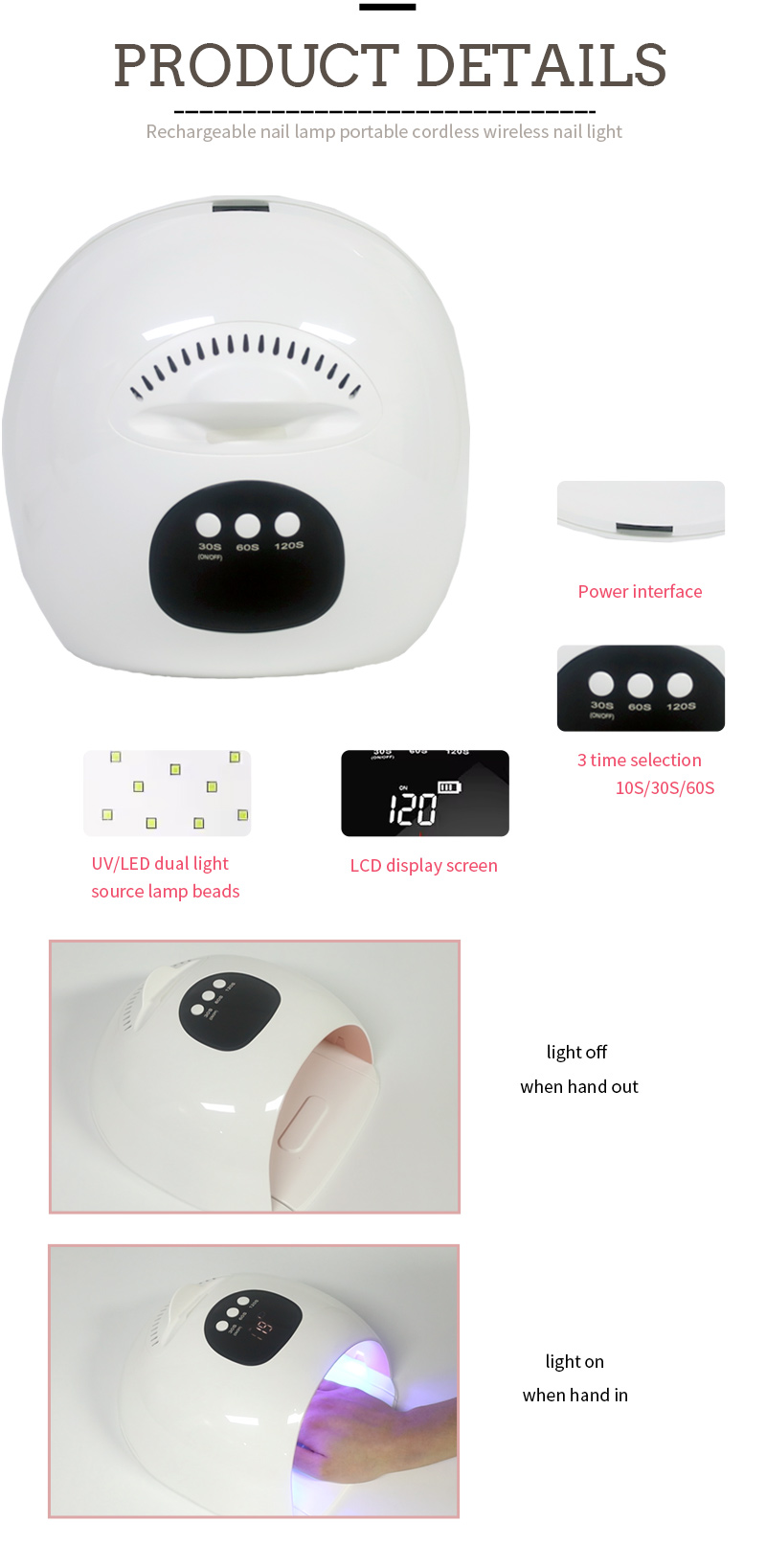 ფრჩხილის ნათურის პროდუქტის მახასიათებლები და აპლიკაციები