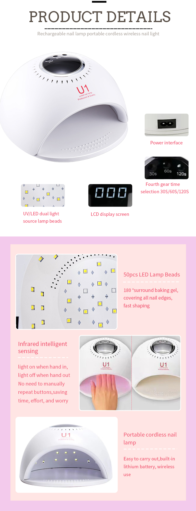 ფრჩხილის საშრობი ნათურა თეთრი გამწმენდი სწრაფი 80w პორტატული