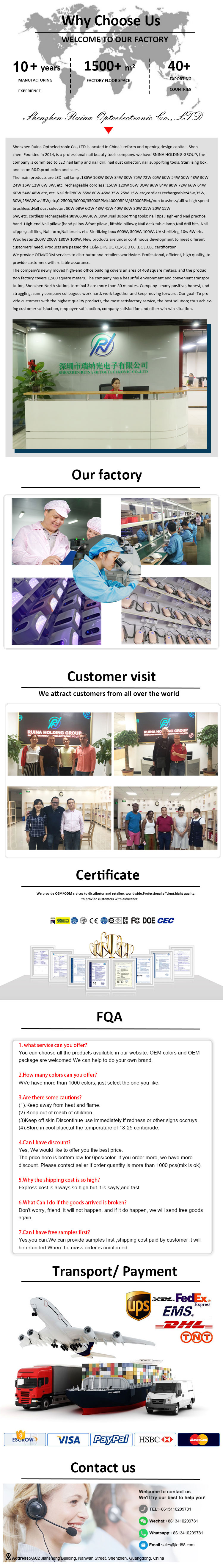 ახალი სტილის მოსახვევში თავი მოჭრილი ფრჩხილების კლიპებიShenzhen Ruina Optoelectronics Co., Ltd., როგორც მაღალი ეფექტურობის ფრჩხილის LED ნათურის ჩინეთის წამყვანი მწარმოებელი, მიმწოდებელი და ექსპორტიორი, თანმიმდევრულად იცავს სრულყოფილი ხარისხის სწრაფვის ფილოსოფიას. ამ ვალდებულებამ მოიპოვა ჩვენი სახლის გამოყენების UV წებოვანი ფრჩხილის ნათურები მრავალი მომხმარებლის ნდობით. განსაკუთრებული დიზაინი, პრემიუმ ნედლეული, შესანიშნავი შესრულება და მაღალი კონკურენტული ფასები - ეს არის ზუსტად ის, რასაც ყველა მომხმარებელი ელის და რასაც ჩვენ ვაწვდით. რა თქმა უნდა, ყოვლისმომცველი გაყიდვების შემდგომი მომსახურება თანაბრად შეუცვლელია.