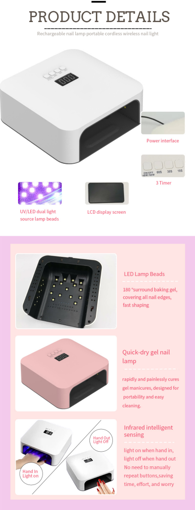 ფრჩხილის საშრობი ნათურა თეთრი გამწმენდი სწრაფი 80w პორტატული