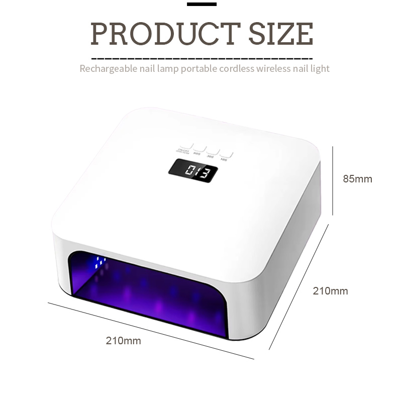 ამ მაღალი ხარისხის ფრჩხილის სწრაფი საშრობი ნათურის ზომებია 210 მმ სიგრძე, 210 მმ სიგანე და 85 მმ სიმაღლე, დიდი ტევადობით და ორივე ხელის და ფეხის გამოყენების შესაძლებლობით, რაც ძალიან მოსახერხებელია.