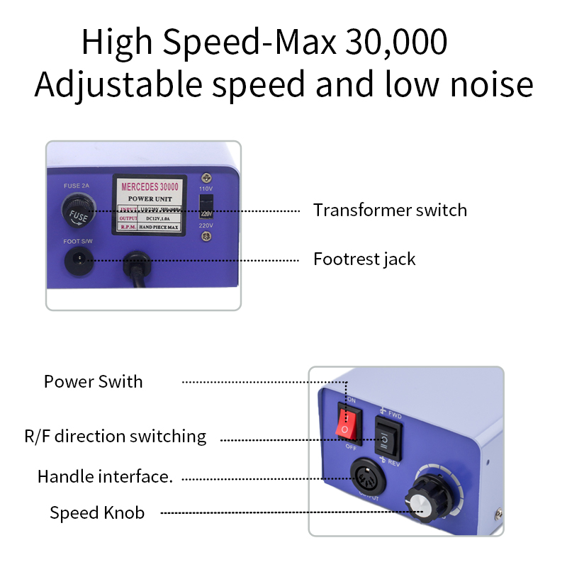 ფრჩხილის საბურღი ელექტრო არ არის ადვილი დასაზიანებელი სახელური 65w 35000 rpm