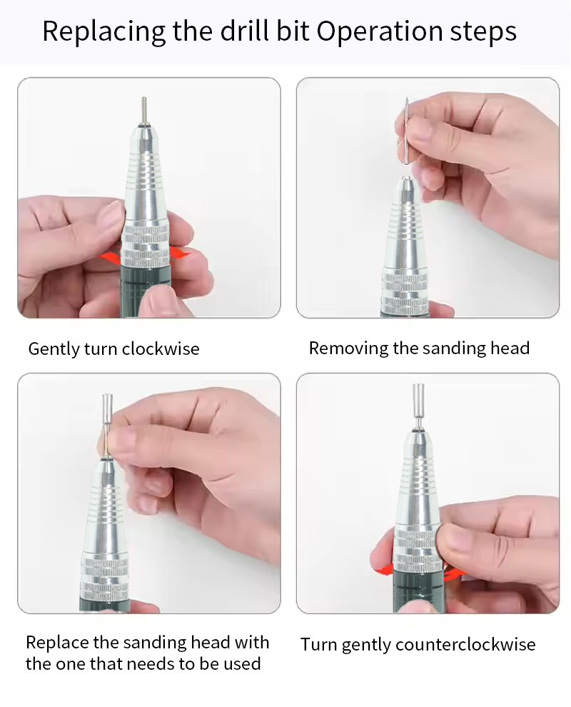 ფრჩხილის საბურღი კომპლექტი ელექტრო გელის მოსაშორებლად 65w 35000 rpm