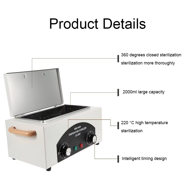 ეს სტერილიზატორი ძირითადად წარმოქმნის სითბოს გამათბობელი რგოლის მეშვეობით, დეზინფექციისთვის მაღალ ტემპერატურას იყენებს.