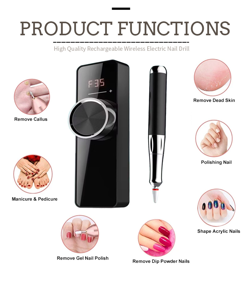 პროდუქტის მახასიათებლები და პროგრამები მოდელის 109 მაღალსიჩქარიანი 35,000 rpm ელექტრო ფრჩხილის ფაილი პოლონური მოსაშორებლად