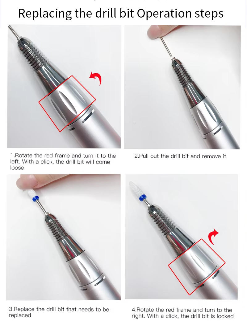 ფრჩხილის საბურღი კომპლექტი ელექტრო გელის მოსაშორებლად 65w 35000 rpm