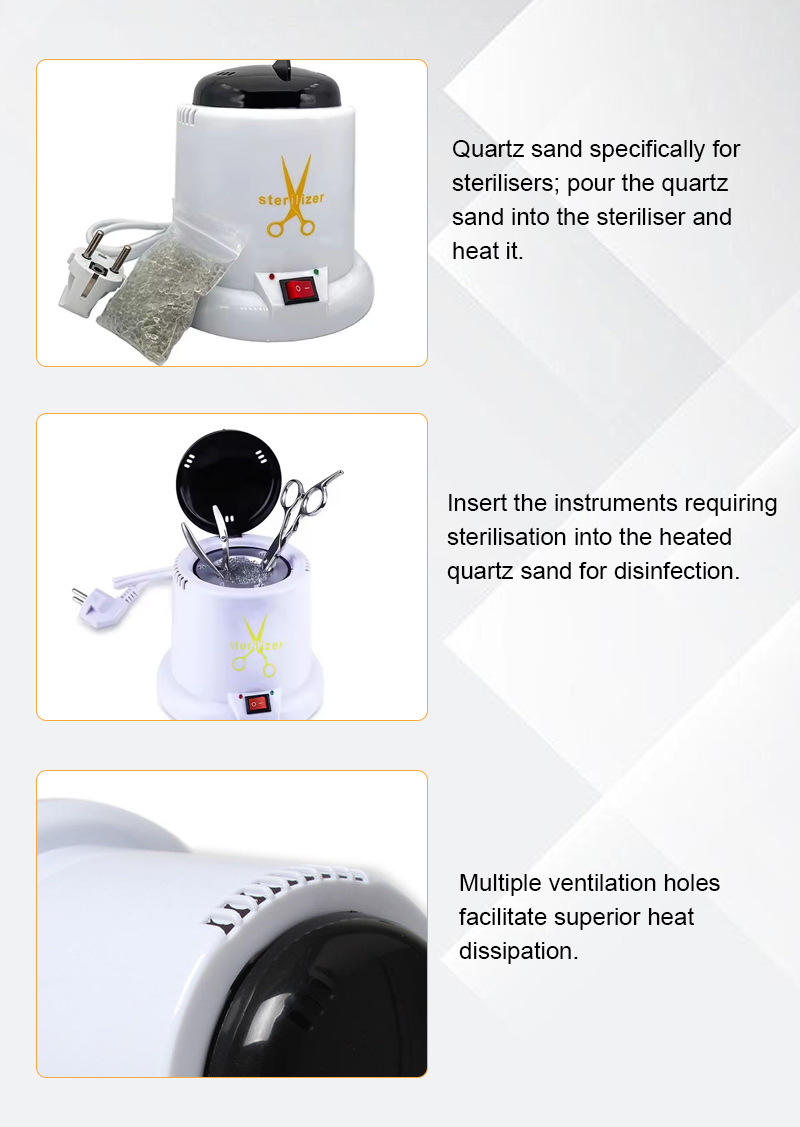 ეს სტერილიზატორი ძირითადად წარმოქმნის სითბოს გამათბობელი რგოლის მეშვეობით, დეზინფექციისთვის მაღალ ტემპერატურას იყენებს.