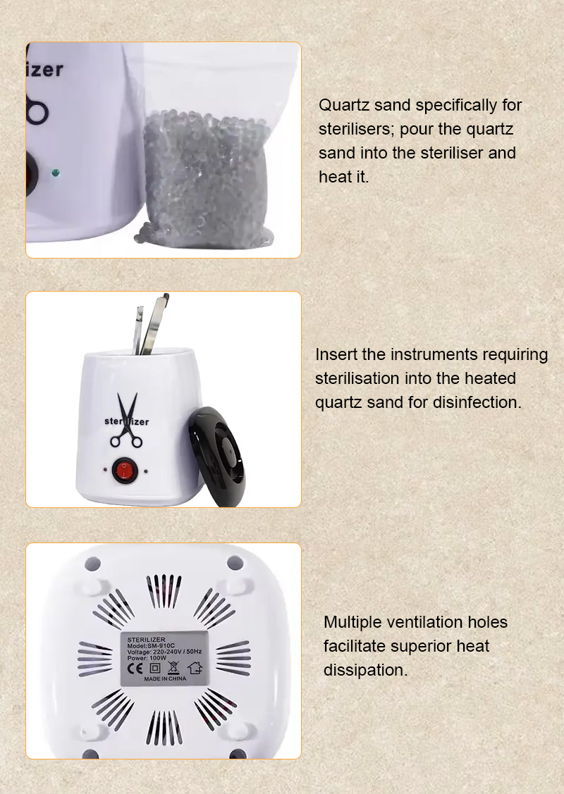 ეს სტერილიზატორი ძირითადად წარმოქმნის სითბოს გამათბობელი რგოლის მეშვეობით, დეზინფექციისთვის მაღალ ტემპერატურას იყენებს.