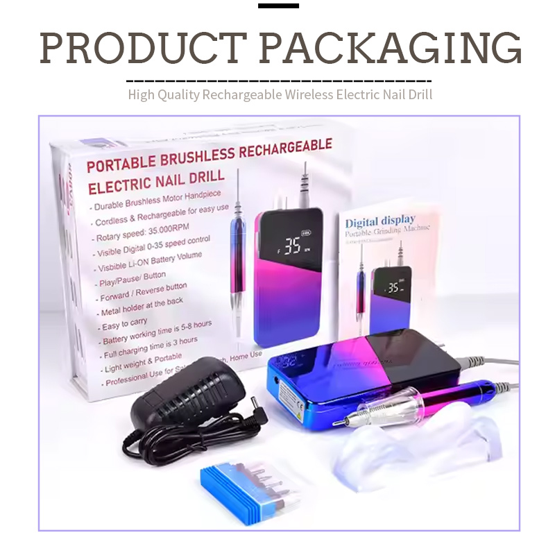 დასატენი უსადენო ფრჩხილის საბურღი ნაკრები ჩემთან ახლოს USB 45w 35000 rpm